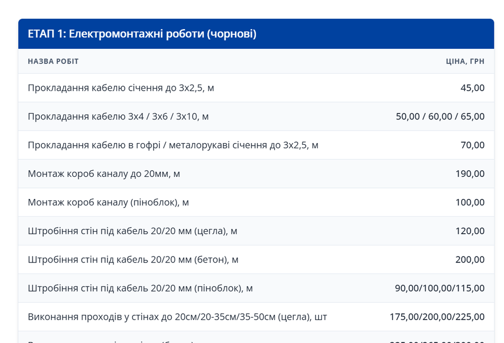 Прайс-лист на будівельні роботи. Квітень 2026